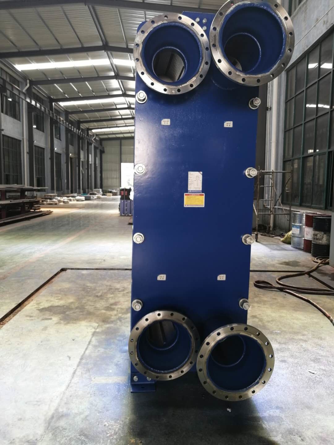 L'échangeur de chaleur de plat se compose d'un paquet de plaques de métal ondulées avec des hublots pour le passage des deux fluides entre lesquels le transfert de chaleur aura lieu. Le paquet de plat est assemblé entre un plat de cadre de difficulté et une plaque de pression mobile et comprimé en serrant des boulons. Les plats sont équipés d'une garniture qui scelle le canal inter de plat et dirige les fluides dans les canaux alternatifs. Le nombre de plats est déterminé par le débit, les propriétés physiques des fluides, la chute de pression et le programme de la température. Les plissements de plat favorisent la turbulence liquide et soutiennent les plats contre la différence de pression. Le plat de cadre et la plaque de pression sont suspendus d'une barre de transport supérieure et situés près d'une barre de guidage inférieure, qui sont fixées à une colonne de soutien. Des connexions sont situées dans le plat de cadre ou, si ou les deux fluides font plus qu'un monopasse dans l'unité, dans le cadre et les plaques de pression.